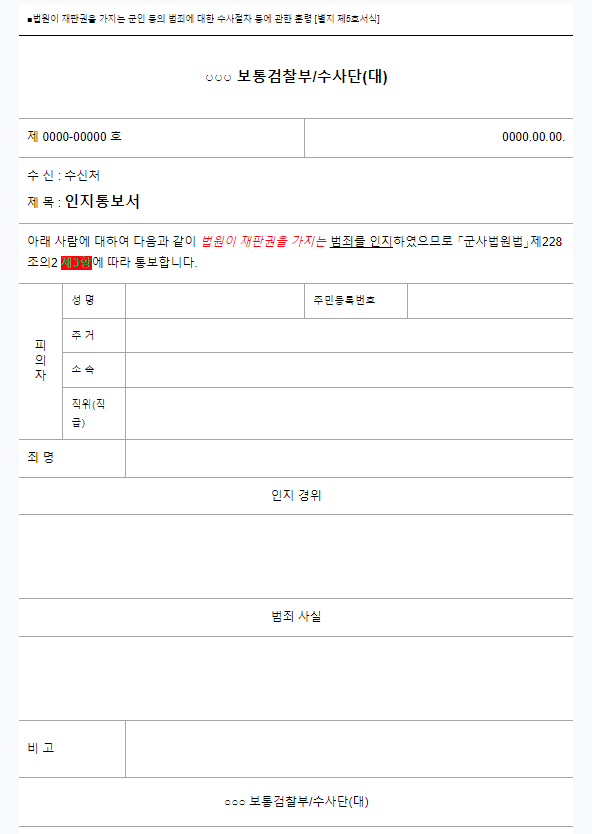앞에서 박정훈팀이 이첩하기 위한 절차의 하나로써의 인지통보서 작성을 언급했는데 이 번은 인지통보서 관련 얘기이다.