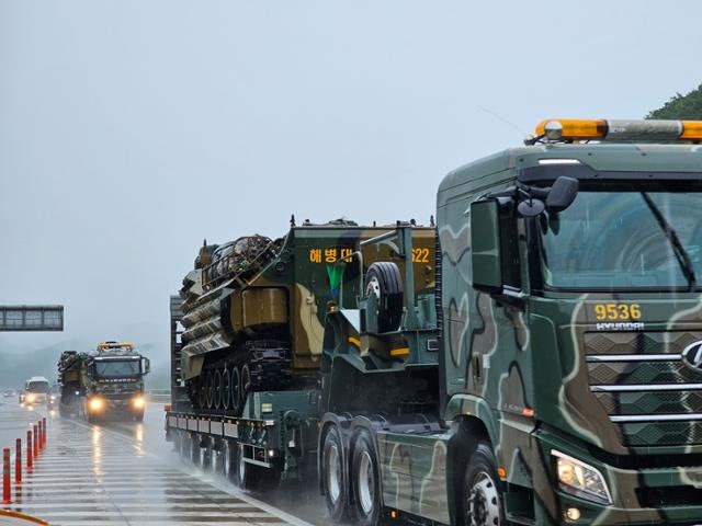 두 번째 알아야 할 상황은 위험하다 겁난다며 사진을 전송한 때는 2023.7.18. 즉 사고 전날 아침 06:11, 06:37이다. 그리고 그 시각 상륙돌격장갑차(KAAV)는 그 때 당시 포항에서 고속도로에 진입하기도 전이었다. 정청래처럼 시제를 섞어 버리면 증인(포7대대장)의 답이 정확할 리가 없다.