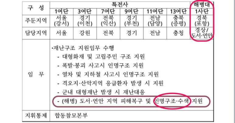 이번 작전에서 신속기동부대에 대한 실종자수색 임무 부여 또한 합참 단편명령에 의해
