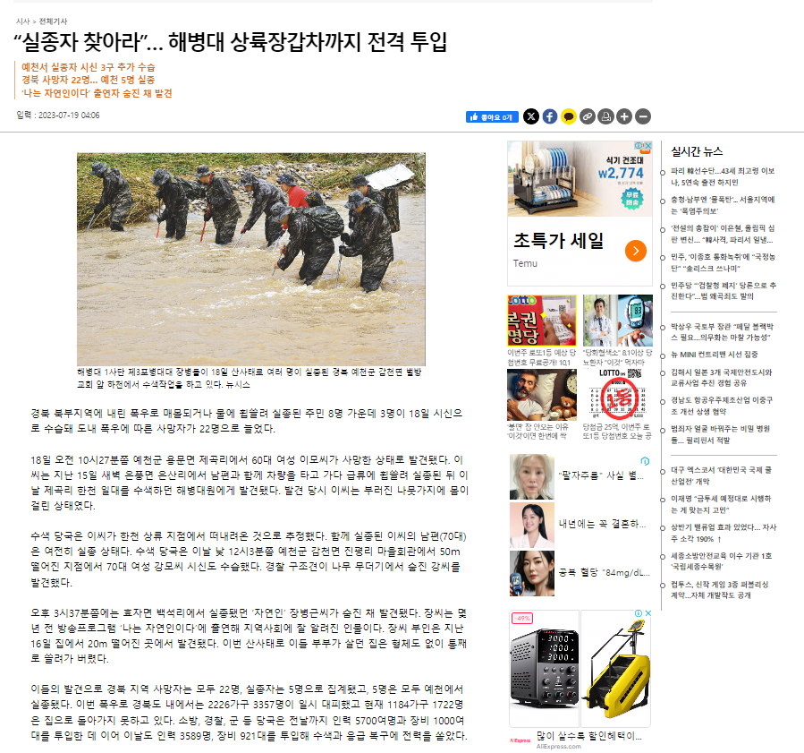 "실종자 찾아라"... 해병대 상륙장갑 차까지 전격 투입(국민)