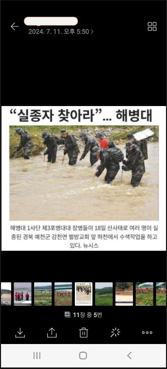 1. 저 위 사진은 PC에서 링크를 열었을 때마저도 볼 수 없는 사진이며 보내진 12장의 사진 중에서 물속에 입수해서 수색하는 사진으로서 오직 1장뿐인 유일한 수중수색 사진이다. 폰에서 열면 조그마한 사진으로 시력이 뛰어나지 않으면 그냥 흙 위에서 뭐하는 것처럼 보일 것이다.