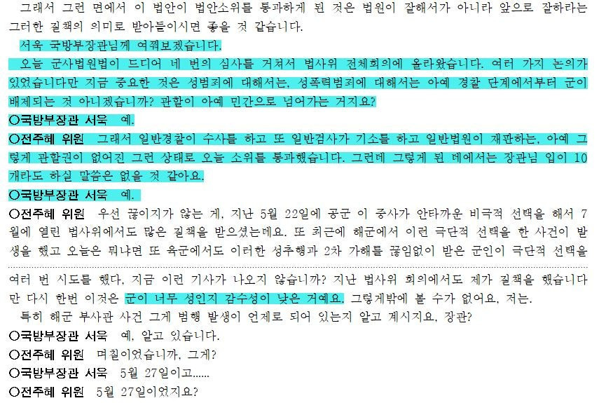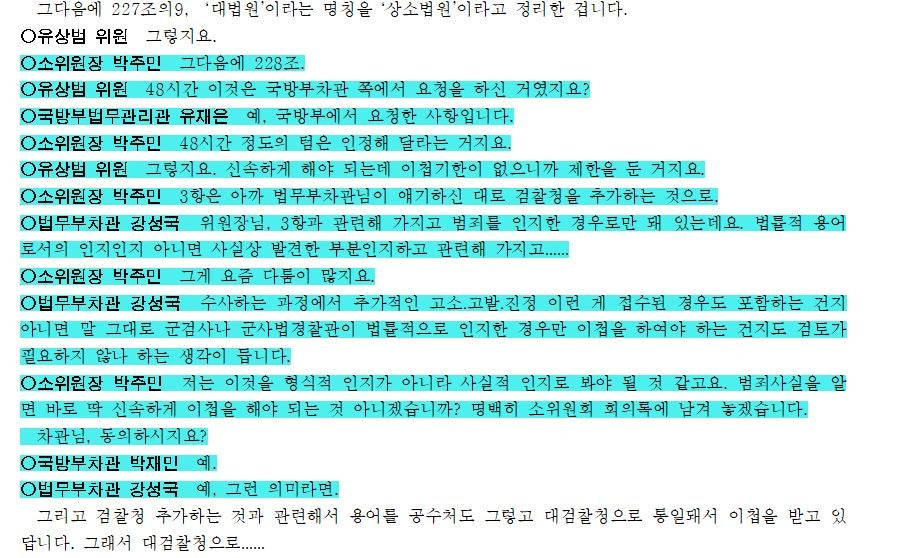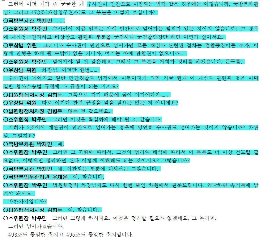 수고를 덜기 위해 군사법원법 개정과정에서의 회의록을 아래에 첨부한다.