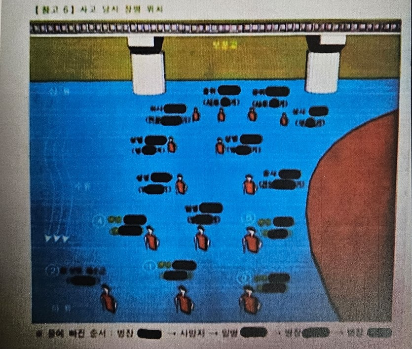 어떻게 물살(유속)의 저항없이 한가롭고 평화로운 분위기의 수색장면이 불과 10분만에 바둑판식 수색대형으로 펼쳐지기도 어려운데도 미스테리처럼 전개되고 한꺼번에 5명이나 휩쓸렸다는 것인지... 도저히 합리적으로 이해할 수 없다.